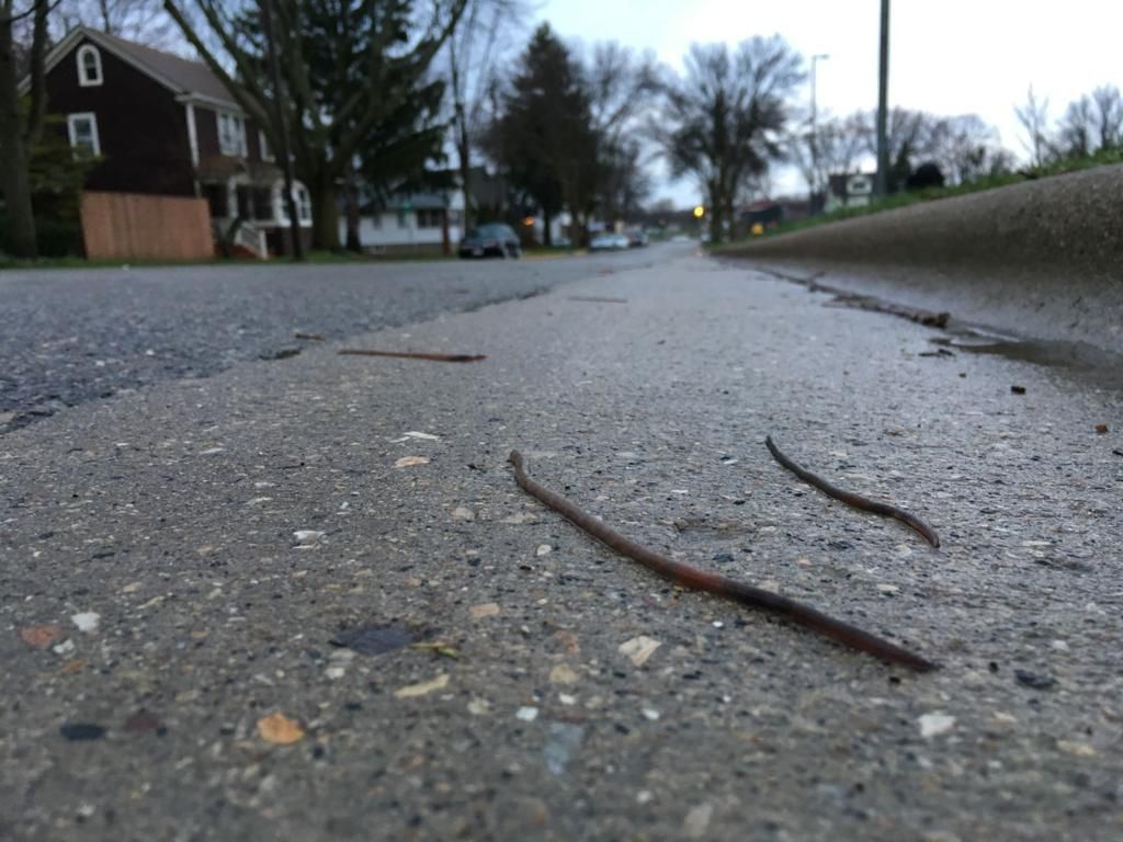 As I made my rounds, I began to notice something; several earthworms scattered along the pavement, dried out and lifeless from the night. A few steps later, a single worm caught my eye. It was still moving, inching slowly toward the safety of the grass.